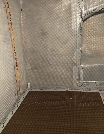 Clear membrane was applied to the walls and floor with one area around the stairwell using mesh to save as much space as possible.
