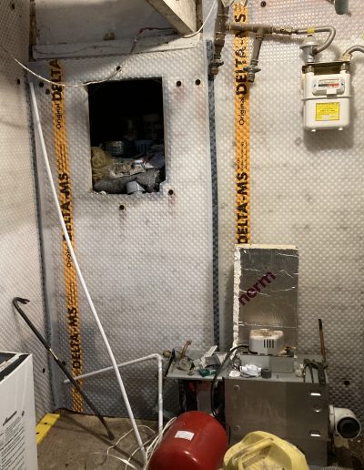 We worked closely with the contractor to install the membrane system whilst in-situ services such as gas feeds, boilers and distribution boards were temporarily removed.